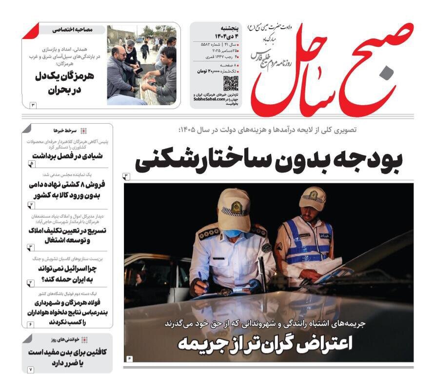 روزنامههای صبح چهارشنبه سوم دی ۱۴۰۴