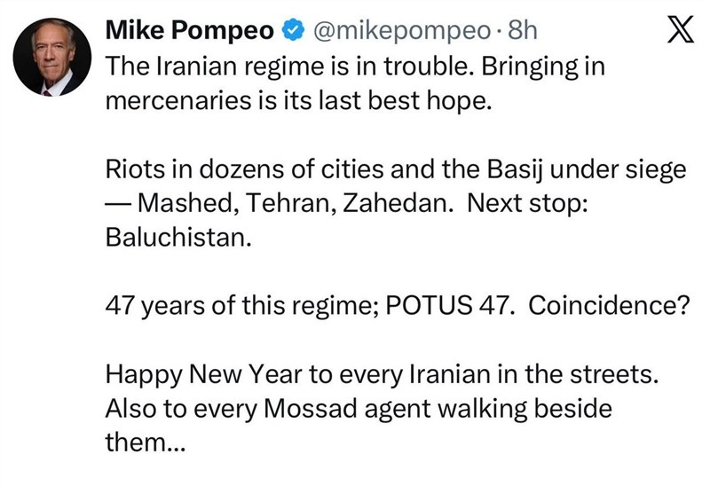 اعتراف بیسابقه پمپئو: عوامل موساد در اغتشاشات ایران حضور دارند