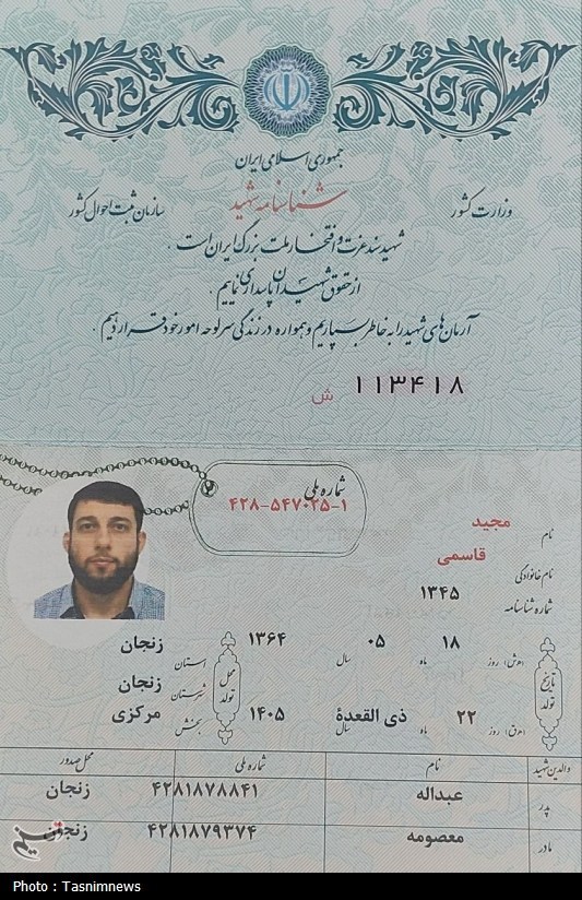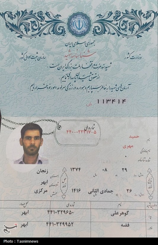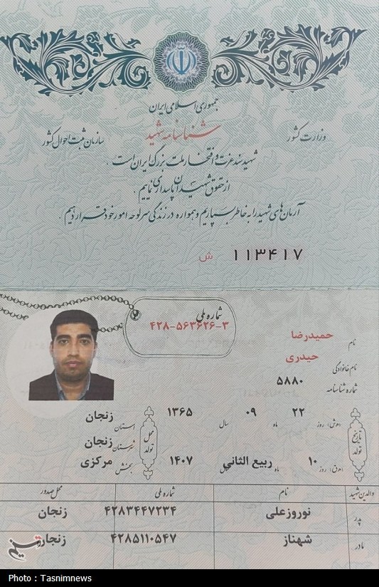 همزمان با برگزاری «یادواره آرامش آفرینان» و در راستای تکریم از سلحشوران دفاع مقدس استان زنجان، اداره کل ثبت احوال این استان با همکاری ستاد برگزاری یادواره، اقدام به صدور و تحویل شناسنامه به خانوادههای 13 شهید والامقام مربوط به «جنگ 12 روزه» کرد.