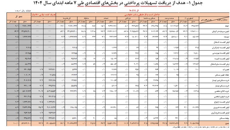 جزئیات تسهیلات 5400 همتی بانکها در 7 ماهه امسال