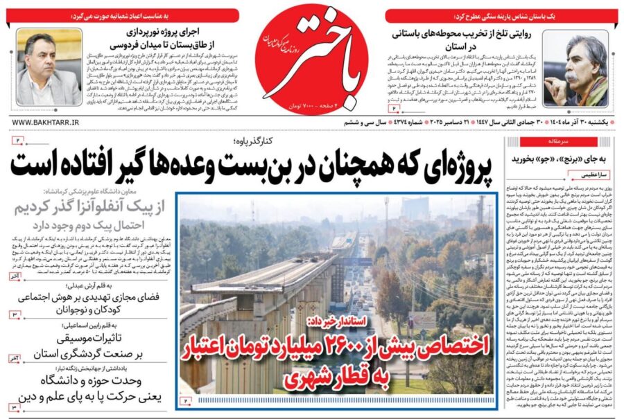 صفحه اول روزنامه‌های کرمانشاه یکشنبه ۳۰ آذرماه