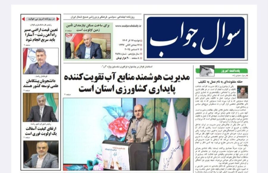 صفحه اول روزنامه های گیلان ۱۷ آذر ۱۴۰۴