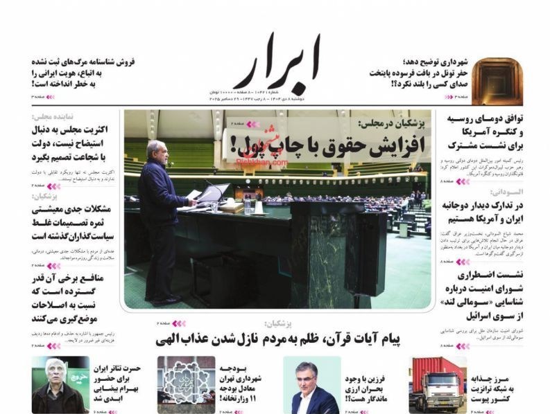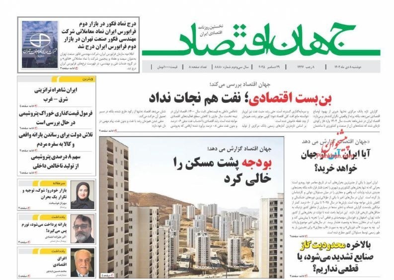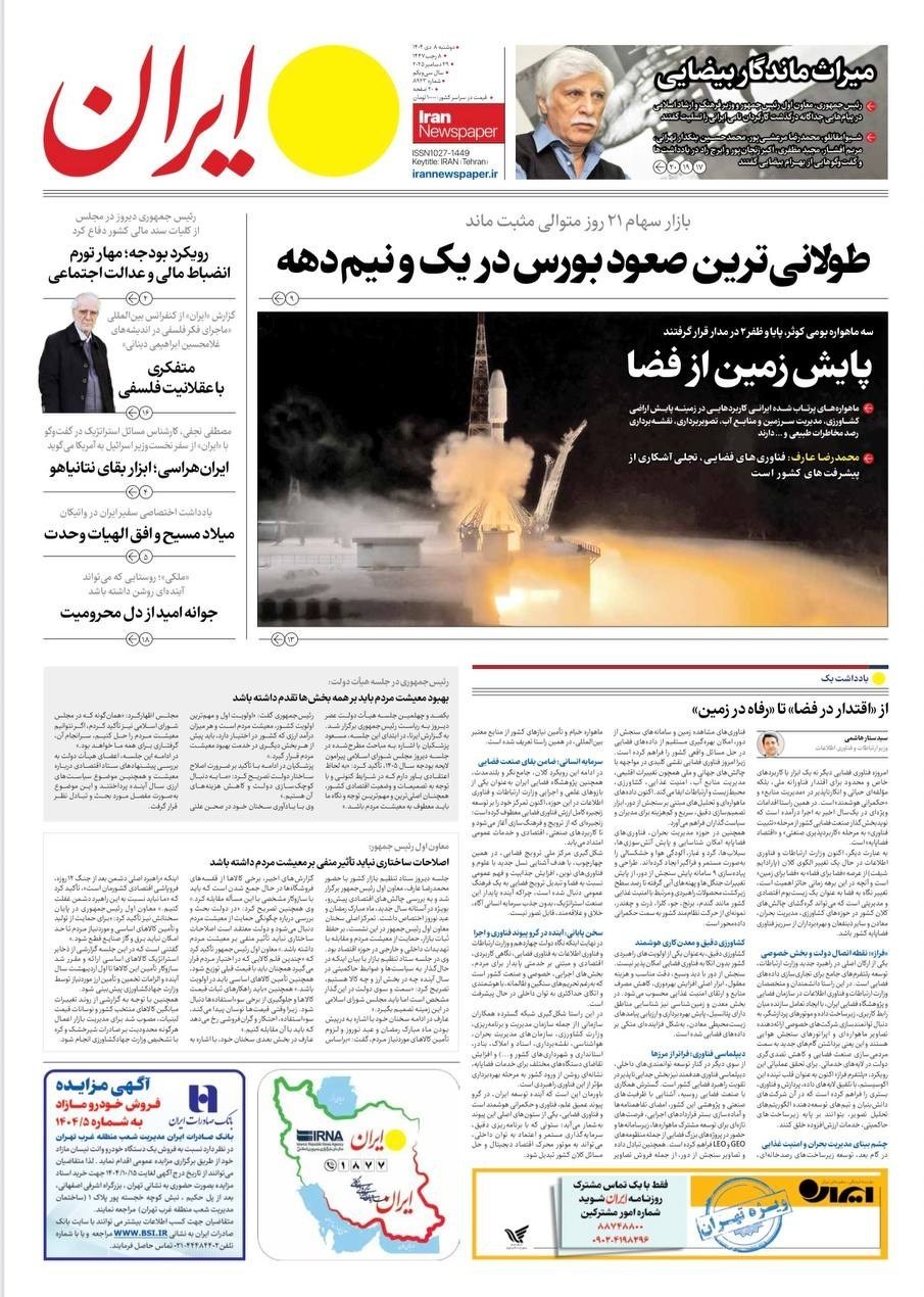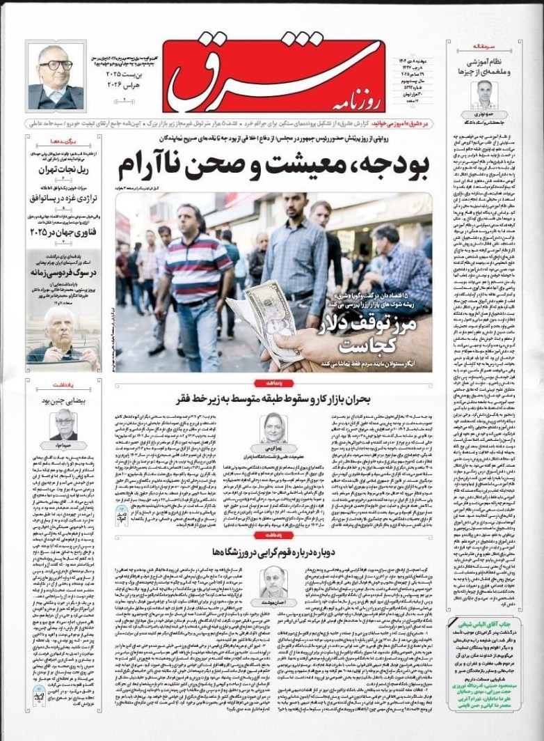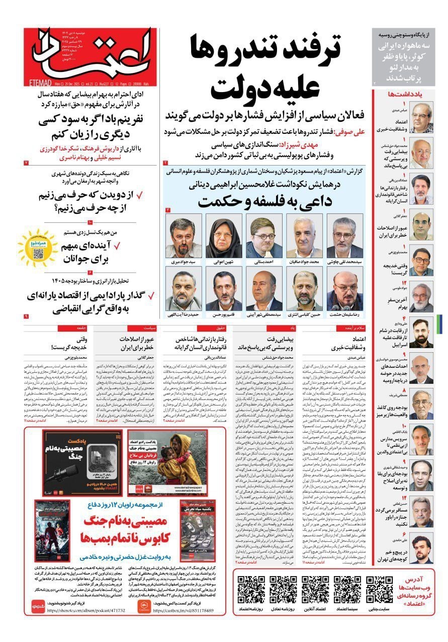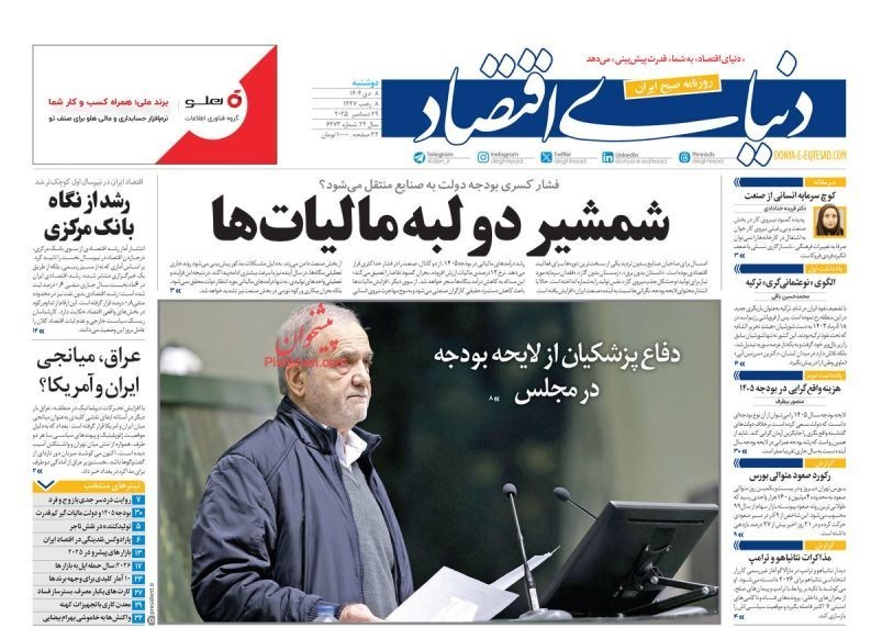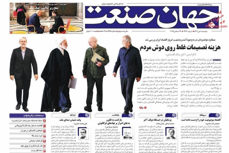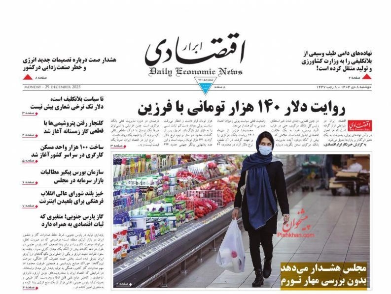 صفحه اول مطبوعات دوشنبه 8 دی/جعبه ابزار مقابله با تورم