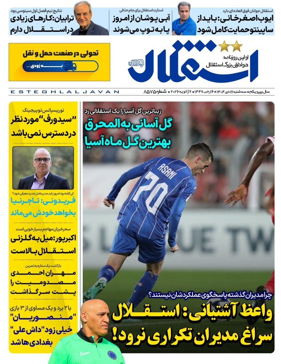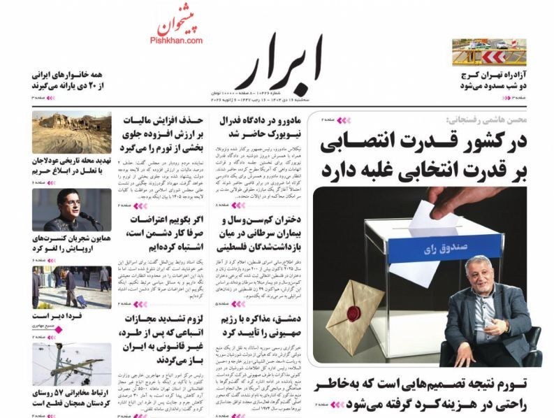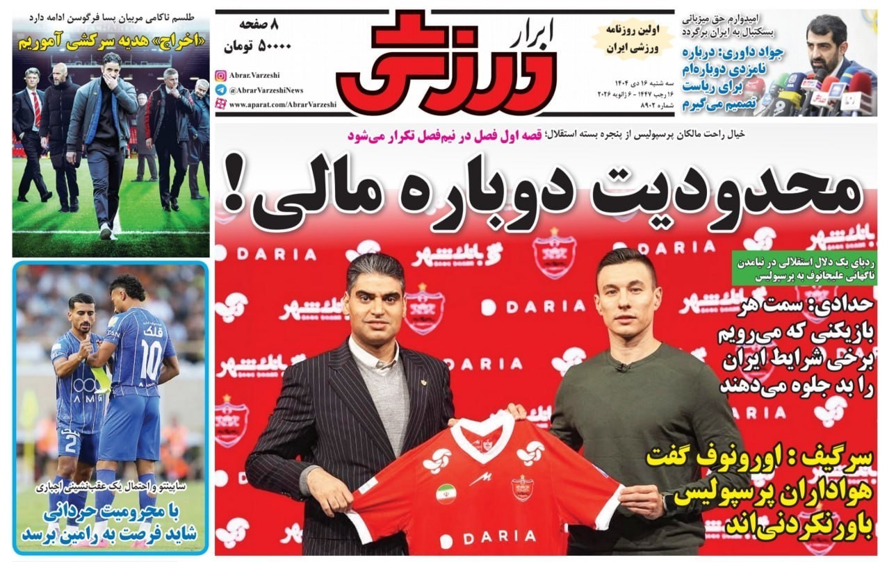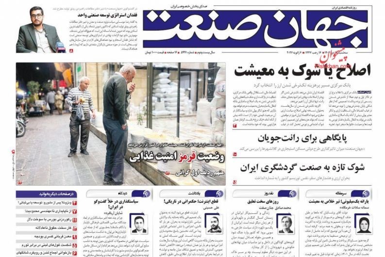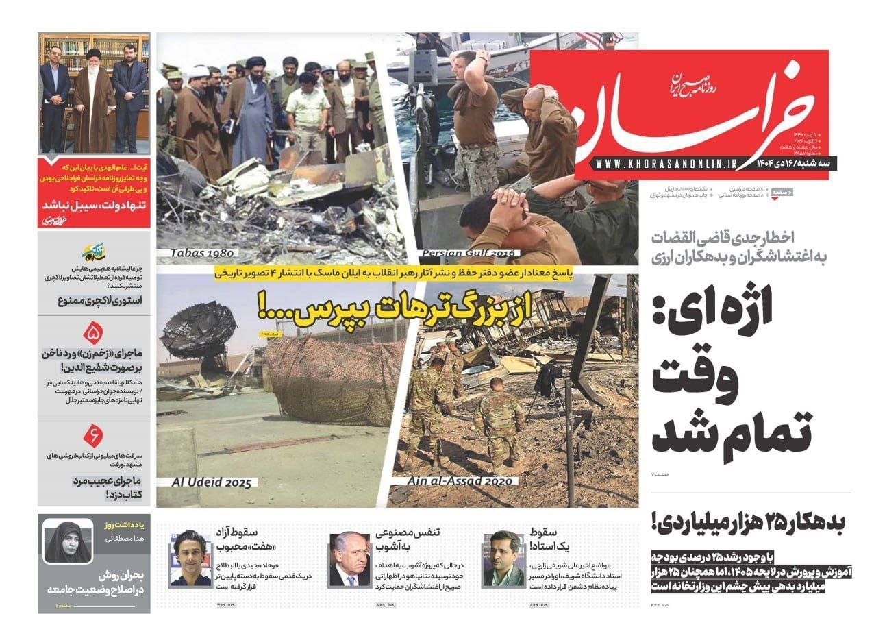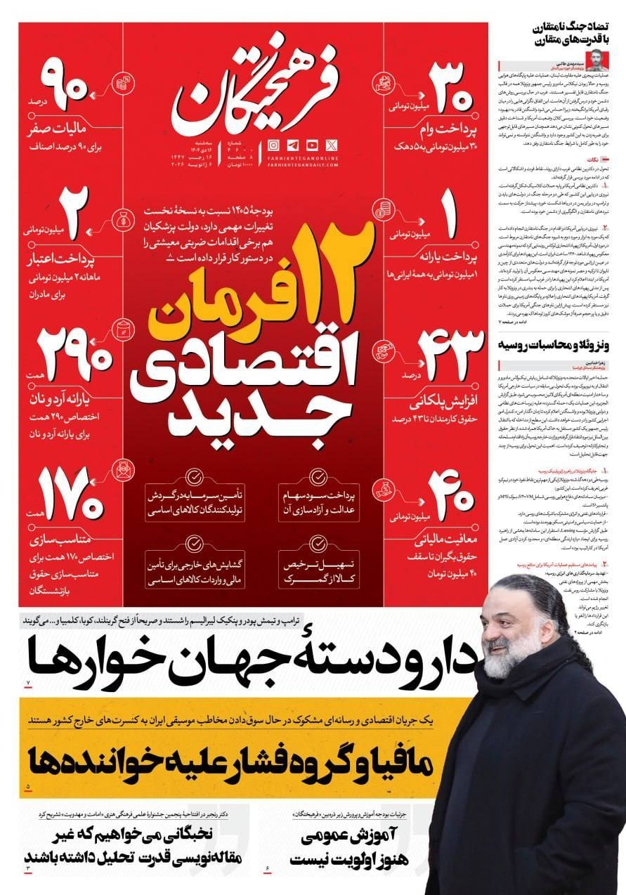 صفحه اول مطبوعات سه شنبه 16 دی