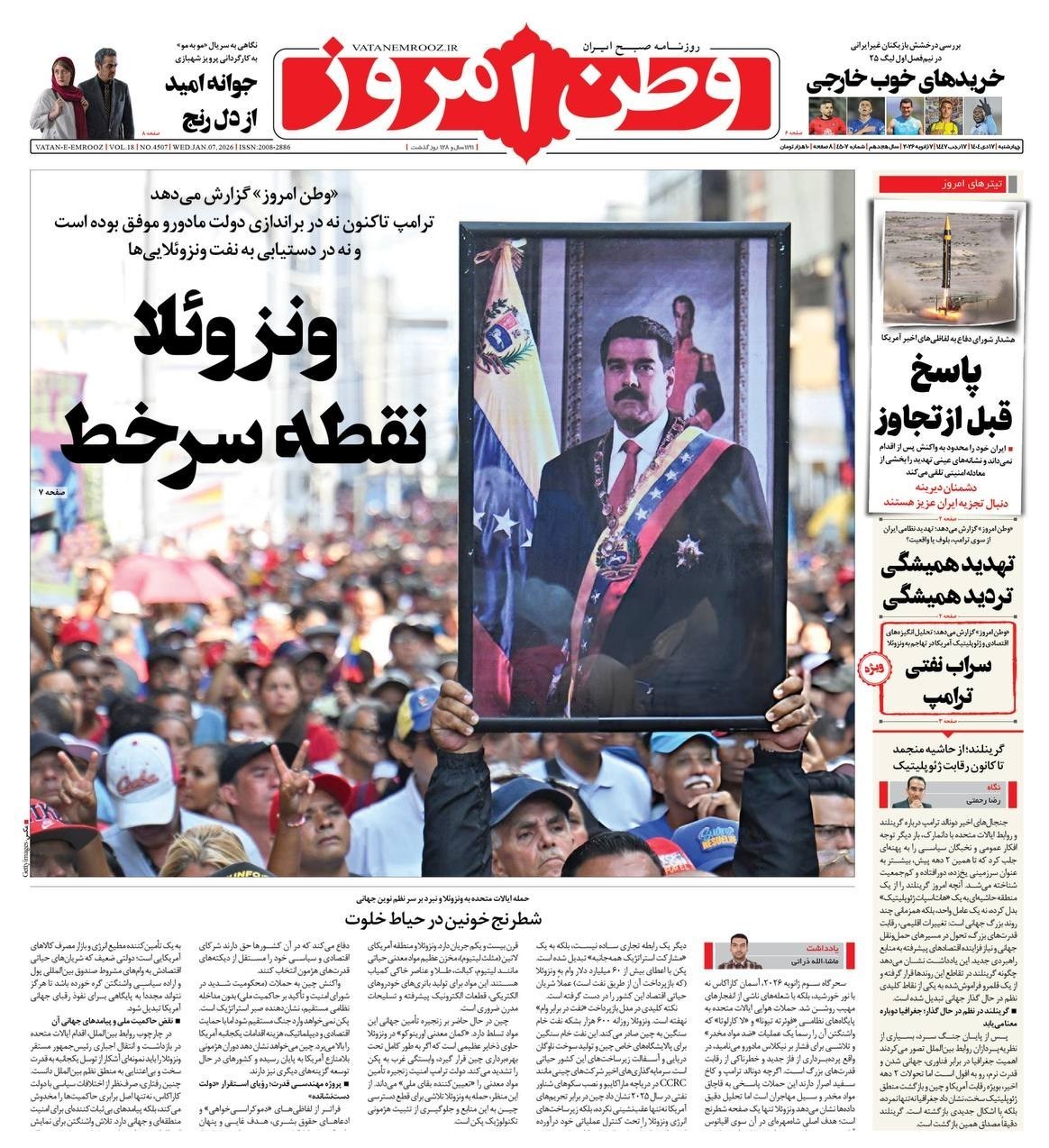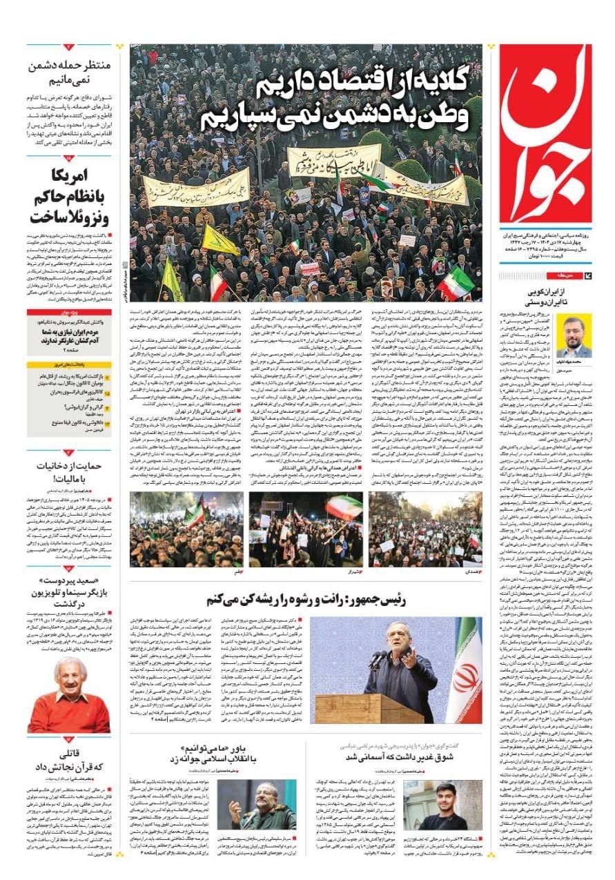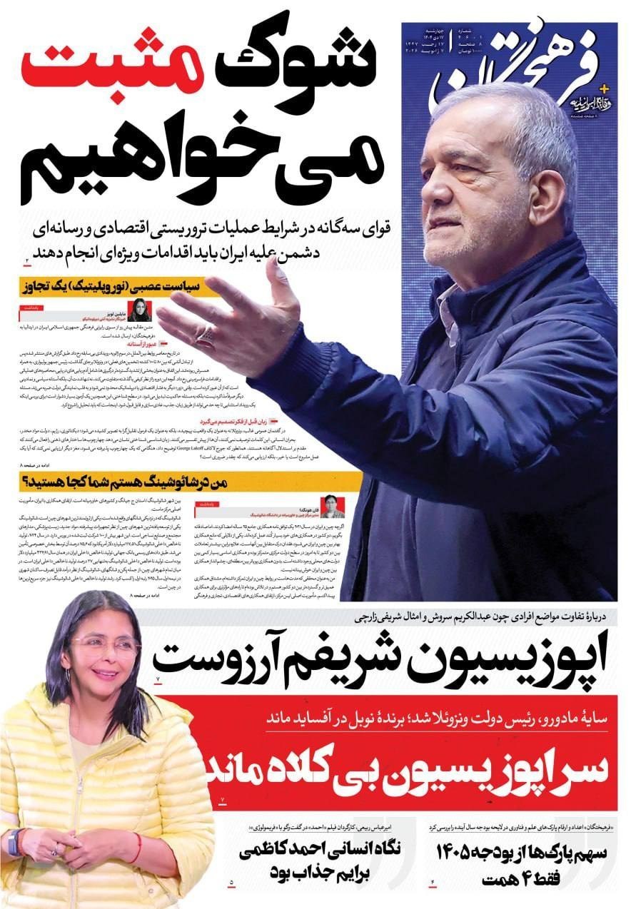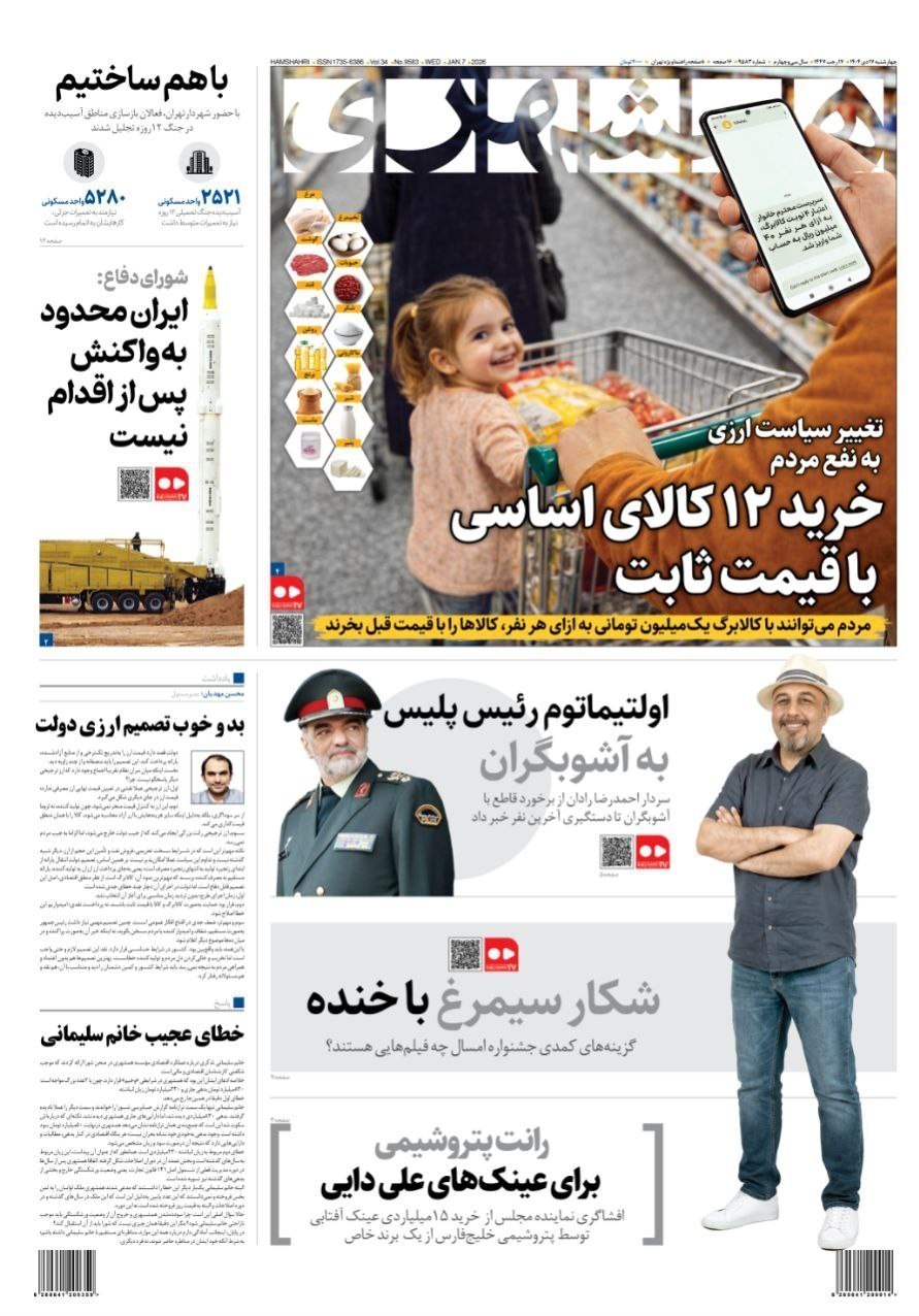 صفحه اول مطبوعات چهارشنبه 17 دی