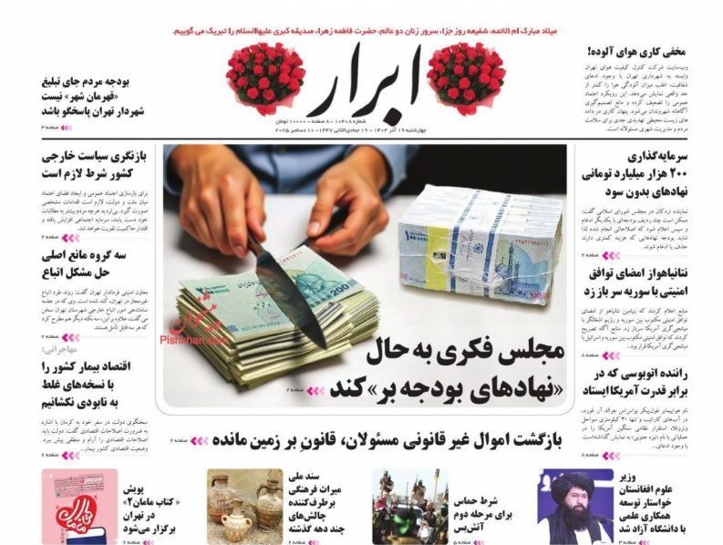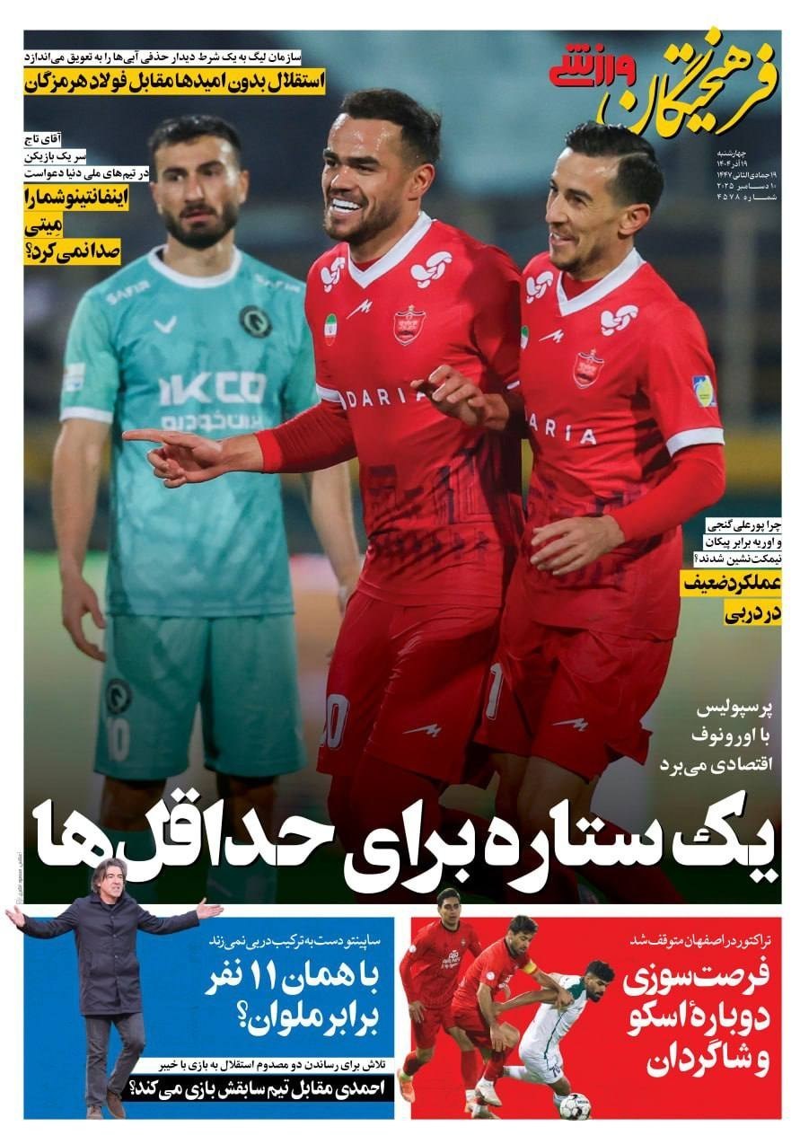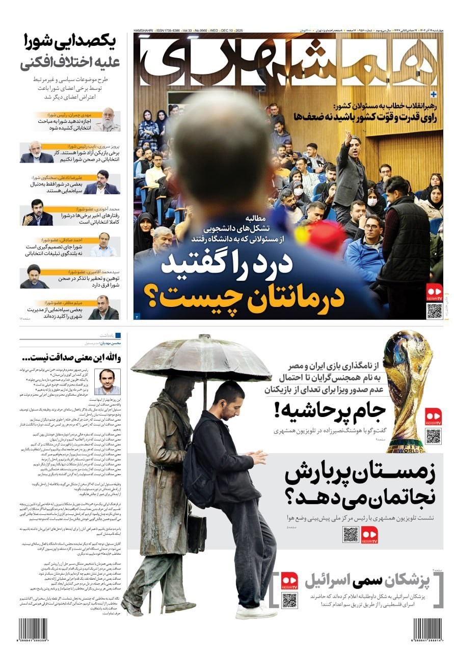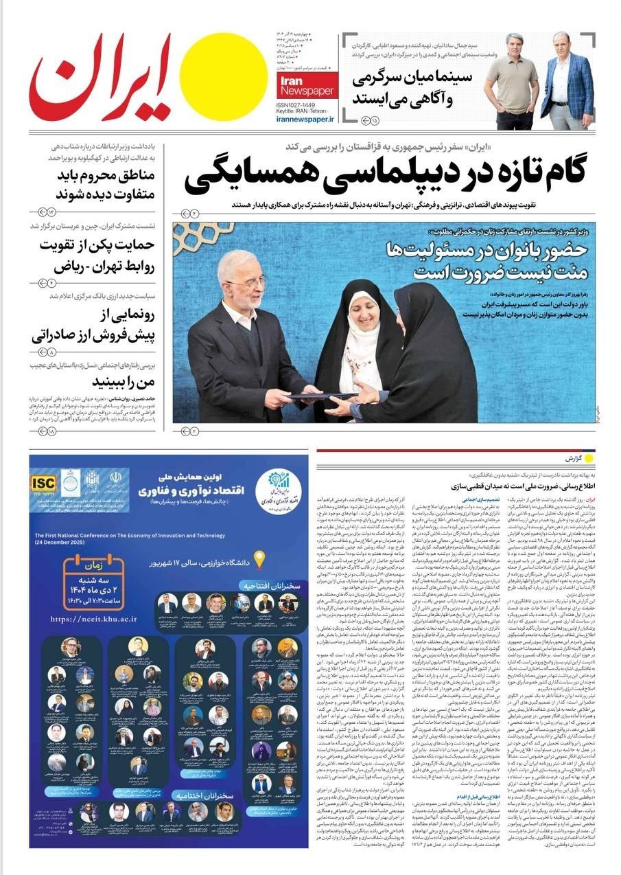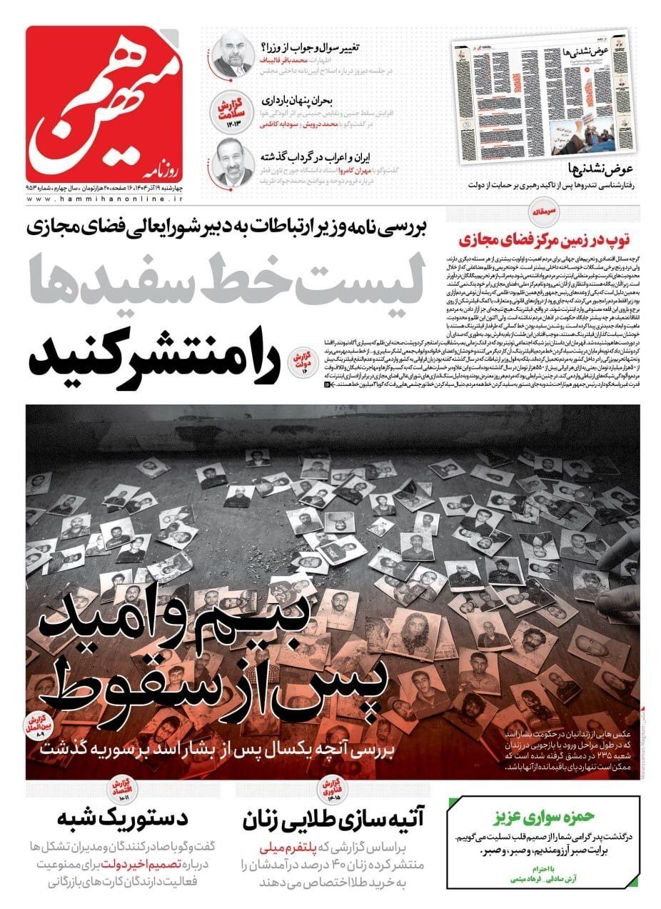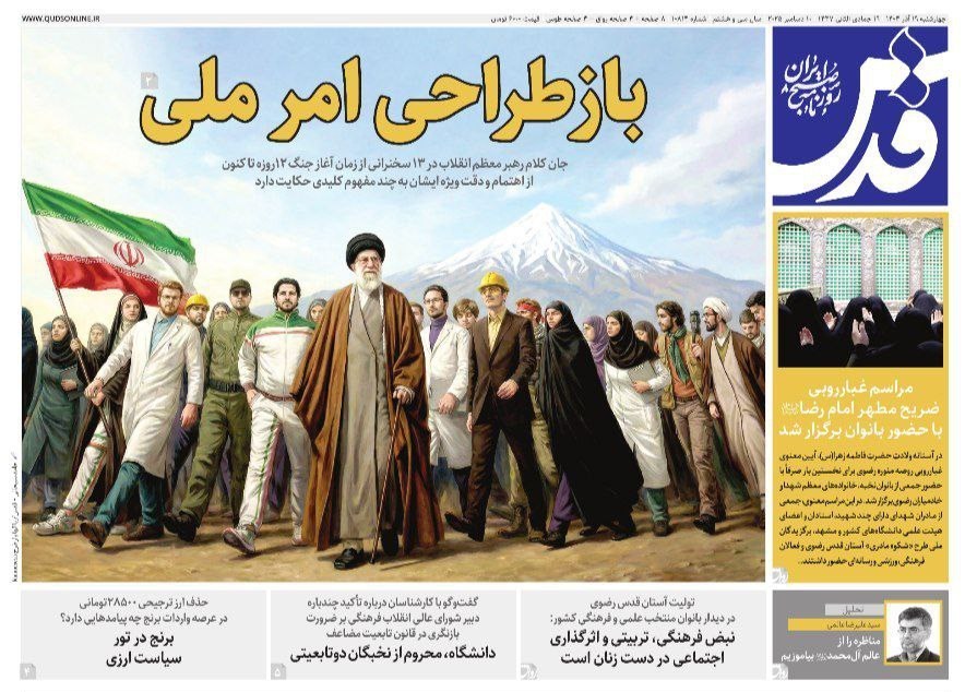 صفحه اول مطبوعات چهارشنبه 18آذر/بازطراحی امر ملی