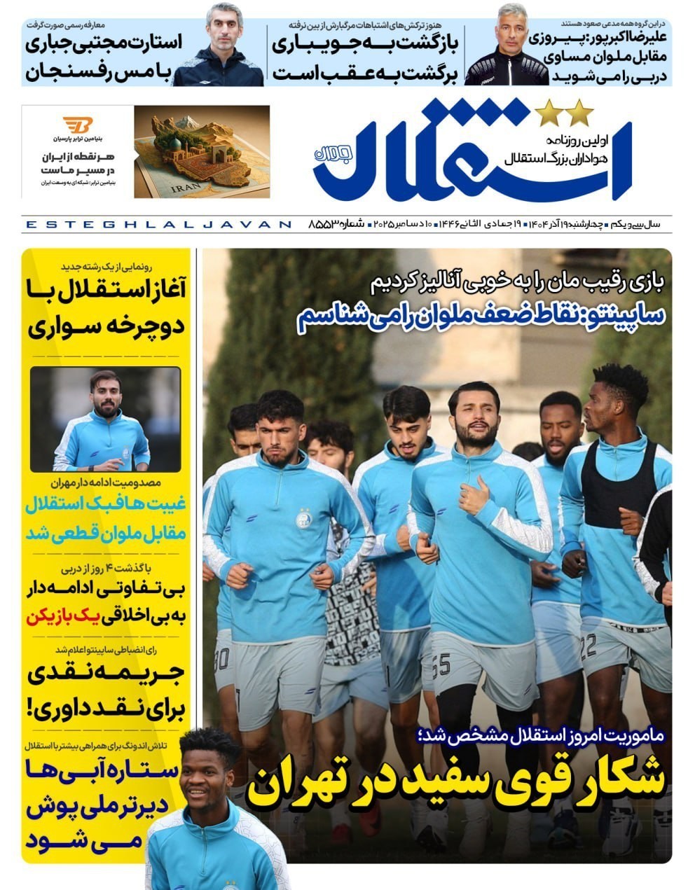 تصاویر منتخب صفحات نخست روزنامه‌های چهار شنبه 19 آذر منتشر شد.