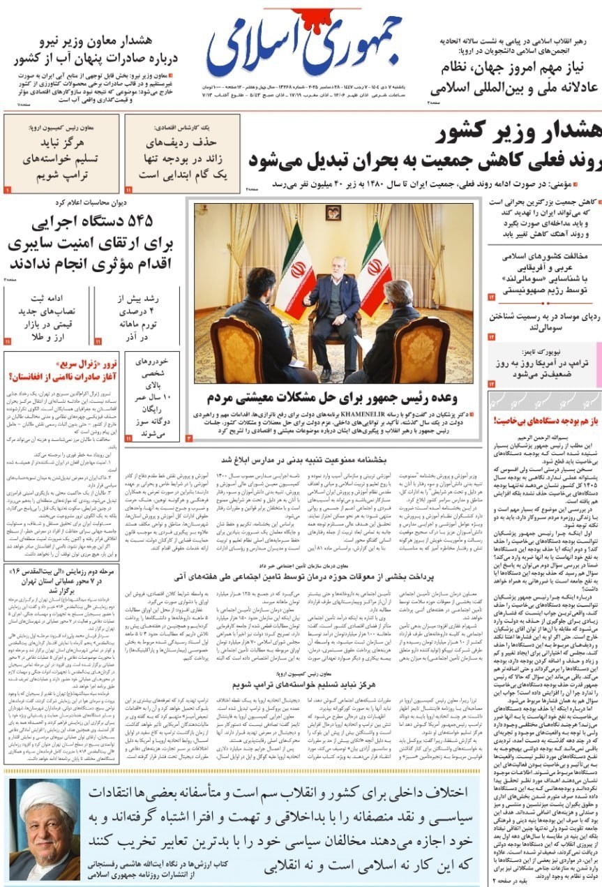 تصاویر منتخب صفحات نخست روزنامه‌های یک شنبه 7 دی منتشر شد.