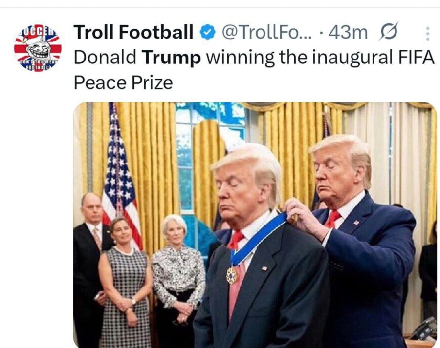 فیفا چیز مسخرهای به نام «جایزه صلح فیفا» اختراع و آن را به ترامپ اهدا کرد، چون «صلح نوبل» جایزه واقعی به او نداد.