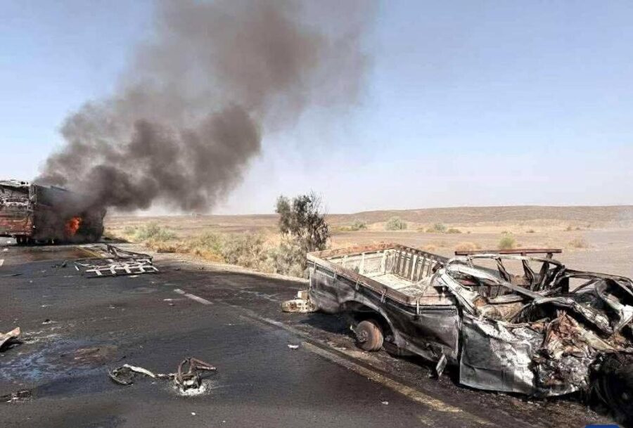 تصادف خودرو سوختبر با اتوبوس مسافربری در محور زاهدان-خاش با دو کشته؛ ۲۸ مهر ماه ۱۴۰۴