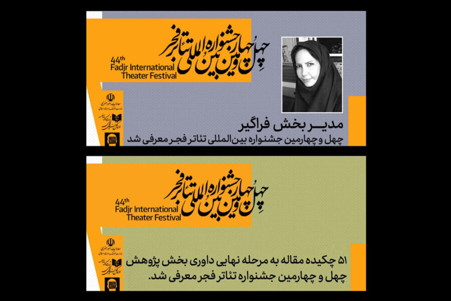 مدیر بخش فراگیر و ۵۱ چکیده مقاله راهیافته به مرحله نهایی چهل و چهارمین جشنواره تئاتر فجر معرفی شدند.