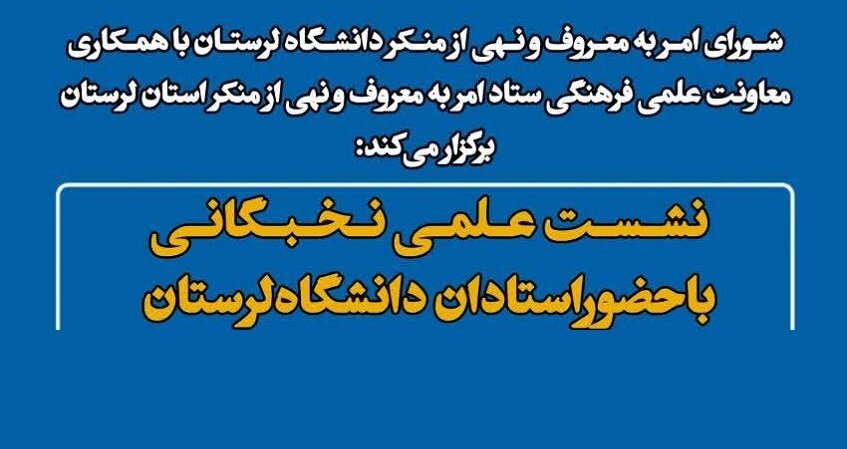 خرمآباد- نشست علمی و نخبگانی «امر به معروف و نهی از منکر» در دانشگاه لرستان برگزار میشود.