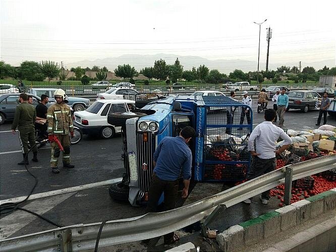اصفهان – خودرو حامل میوه در اصفهان به دلیل لغزندگی جاده ناشی از ریزش گازوئیل بر روی آسفالت واژگون شد.