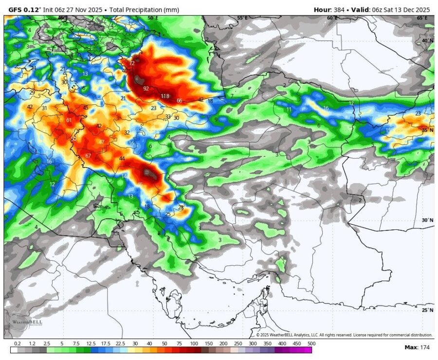 به گفته گودرزی، فردا شنبه ۱۵ آذر ماه فقط در ارتفاعات زاگرس جنوبی واقع در جنوب کرمان و شمال هرمزگان بارشهای پراکنده رخ خواهد داد.