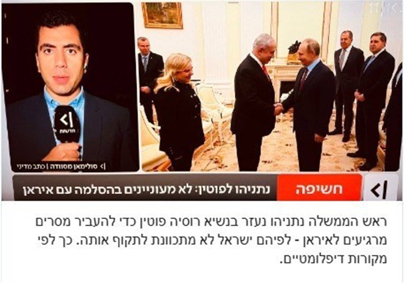 به گزارش گروه عبری خبرگزاری تسنیم، خبرنگار شبکه رادیو و تلویزیون سراسری رژیم صهیونیستی (کان) شامگاه دوشنبه اعلام کرد، اطلاعاتی در اختیار دارد که نشان میدهد، بنیامین نتانیاهو نخست وزیر اسرائیل شخصا با ولادیمیر پوتین رئیس جمهور روسیه تماس گرفته و از وی خواسته به تهران اطمینان دهد، اسرائیل قصدی برای تکرار تجاوز خود ندارد.